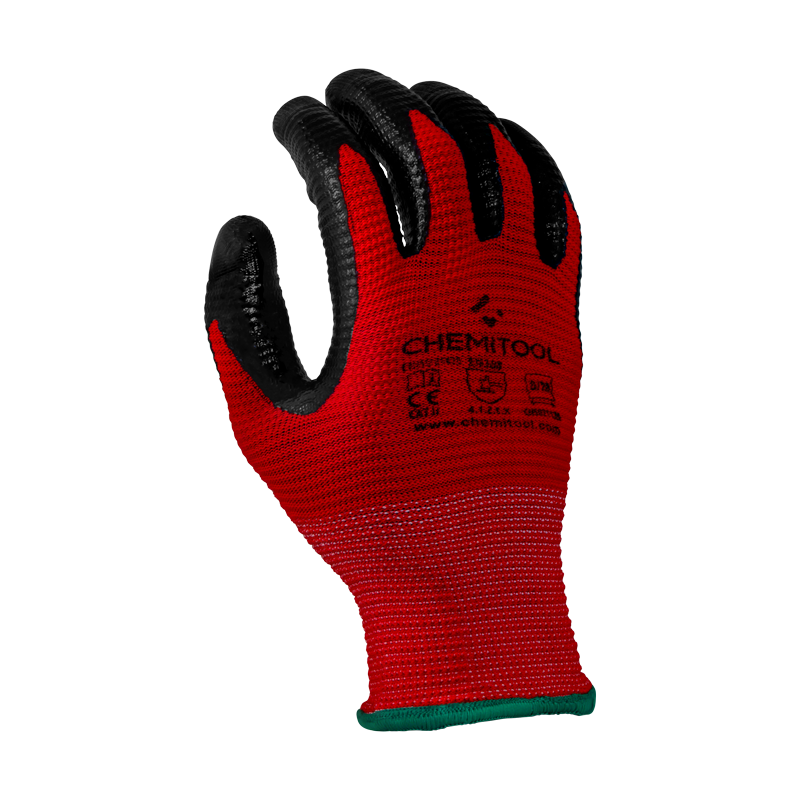El guante de poliéster recubierto de nitrilo CHEMITOOL es un guante de uso general fabricado en poliéster con un forro sin costuraspara aumentar el confort. El recubrimiento de agarre de nitrilo confiere a este guante una gran capacidad de agarre y resistencia alos aceites, hidrocarburos, grasas, humedad y abrasión. Puño elástico para garantizar un ajuste perfecto y evitar la penetración deresiduos y suciedad. Este guante es cómodo durante largos periodos de uso y tiene una gran durabilidad.