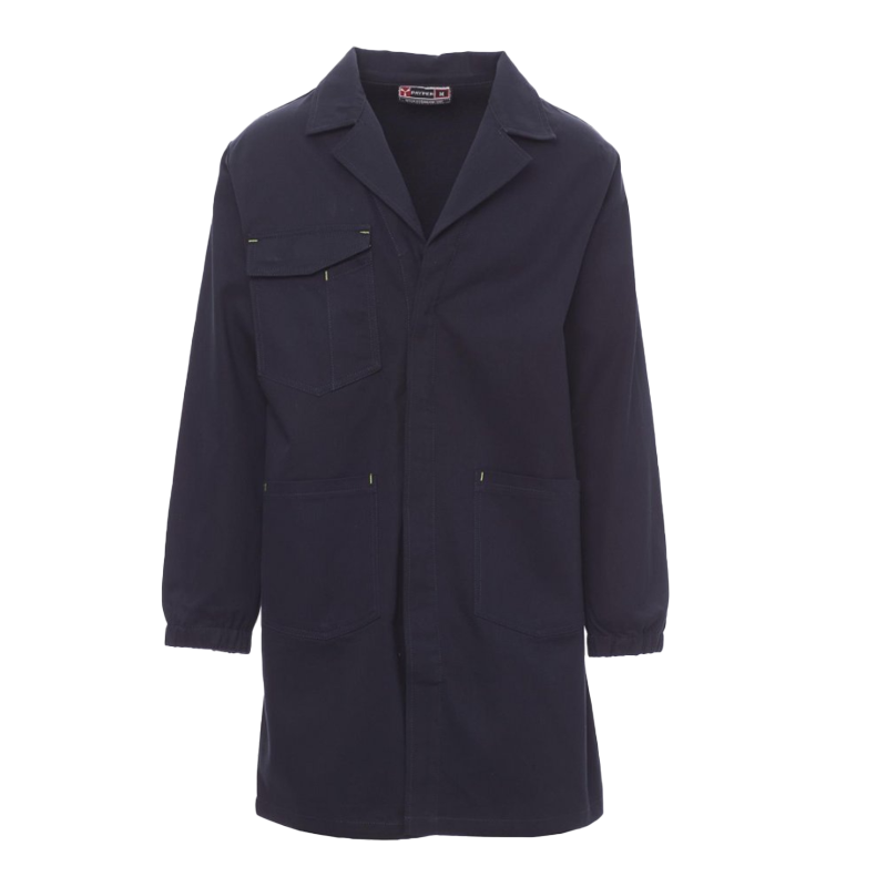 Bata SHELL CHEMITOOL con cuello abierto, puños elásticos, cierre con botones ocultos, dos bolsillos abiertos y bolsillo en el pechocon soporte para el móvil, porta-identificación, porta-bolígrafos y solapa con cierre de velcro.