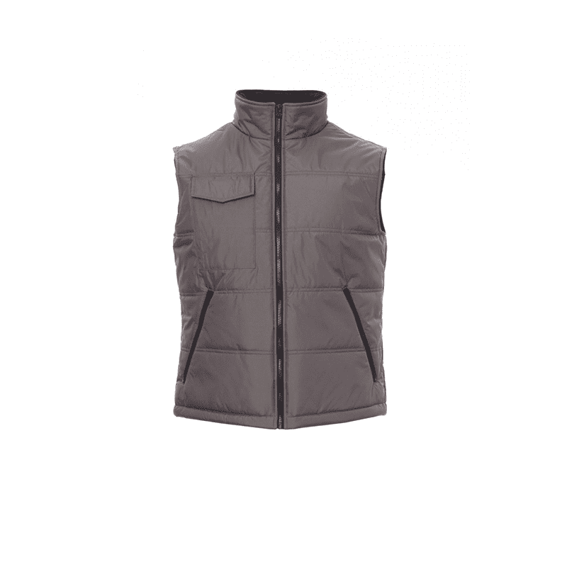 Chaleco cosido con espalda contorneada y tejido acolchado con pespuntes, acabado con forro de alta densidad, interior del cuello enforro polar. Dos amplios bolsillos con cremallera, un bolsillo para el móvil en el pecho y un bolsillo interior.