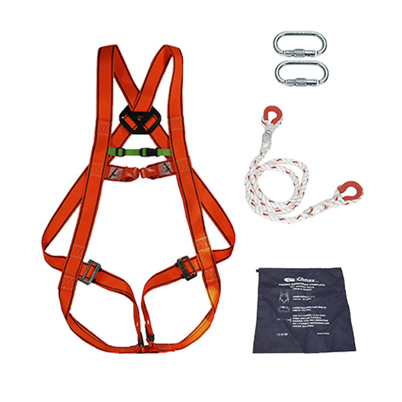 Kit de Protección Contra Caídas CHEMITOOL es indicado para trabajos en la que exista un riesgo de caída y es compuesto por un arnêsde un punto de anclaje anticaídas y un elemento de amarre con la cuerda de poliamida torcida con 1,5m y las puntas con conectores direccionales de acero y bloqueo de seguridad automático. La vida útil teórica del equipo es de 10 años a partir de la fecha de fabricación y 5 años a partir del primer uso.
