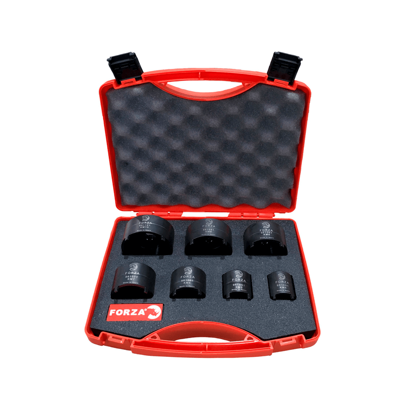 Este maletín incluye una selección de llaves fabricadas con materiales de alta resistencia, específicamente diseñadas para ajustarse casi al milímetro al diámetro de las tuercas KM, garantizando un ajuste perfecto y minimizando el riesgo de deslizamientos o dañosen las piezas.