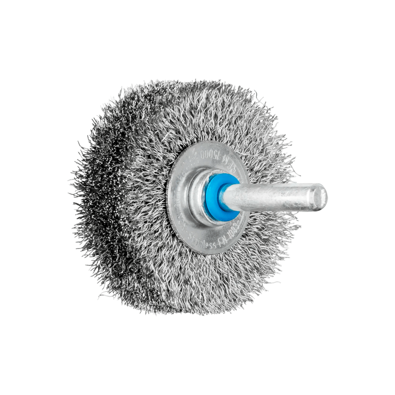 Todas las cardas PFERD TOOLS con filamentos INOX están codificadas por colores en azul y son adecuadas para el uso en todos los aceros inoxidables (INOX), como por ejemplo V4A. La calidad de alambre 1.4310 tiende a volverse ferromagnética en caso de trabajo en frío, es decir, puede ser atraída mediante imanes.