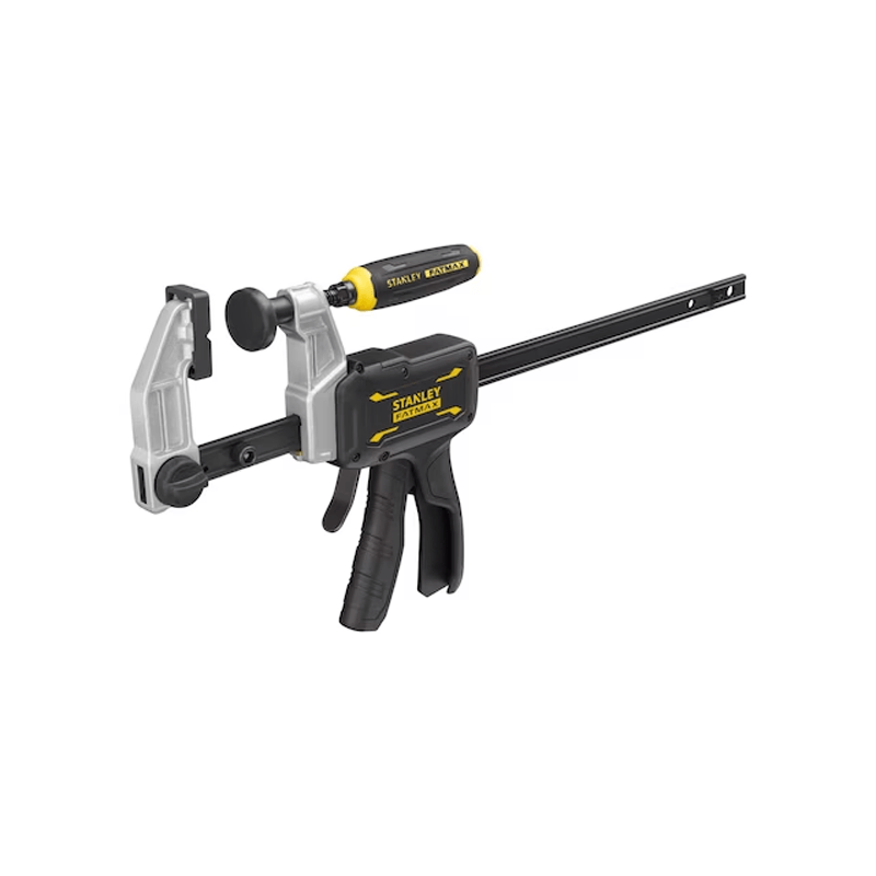 - Sujeción rápida - apriete el gatillo para aplicar rápidamente 136 kg de fuerza de sujeción inicial a la pieza de trabajo; - Sujeción fuerte - sujete la pieza de trabajo con 374 kg de fuerza de sujeción accionando el tornillo de sujeción; - Tornillo con hexágono de sujeción - la fuerza de sujeción también se puede aplicar utilizando una llave en el tornillo; - Acoplamiento incorporado - para mayor longitud, conecte 2 abrazaderas entre sí con los tornillos de acoplamiento incorporados; - Mecanismo de cambio rápido - para una conversión rápida y sin herramientas de abrazadera a separador; - Barra en I de acero: evita que se doble y flexione bajo presión, al tiempo que aumenta la durabilidad; - Fondos de abrazadera en forma de V: para una sujeción eficaz de objetos de forma irregular, como tubos.