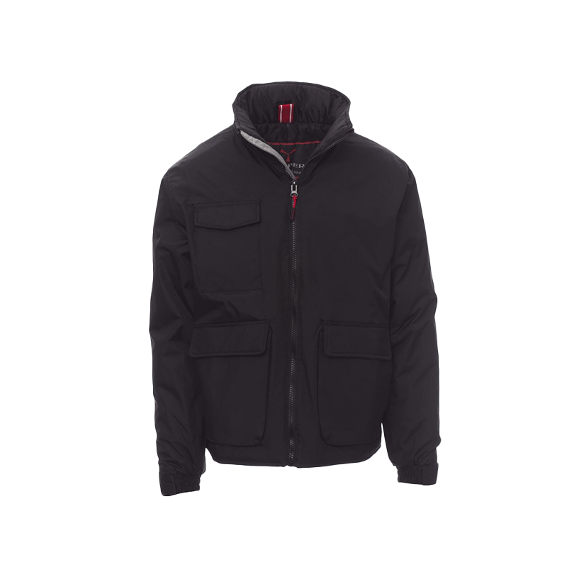 Chaqueta unisex, cremallera de plástico de 8 mm concursor de metal, capucha plegable en el cuello, puñoselásticos con sistema de ajuste, dos amplios bolsillosdelanteros con Lock-System, dos bolsillos laterales,bolsillo para teléfono móvil a la altura del pecho. Interior:acolchado, cremallera para facilitar la impresión y elbordado.