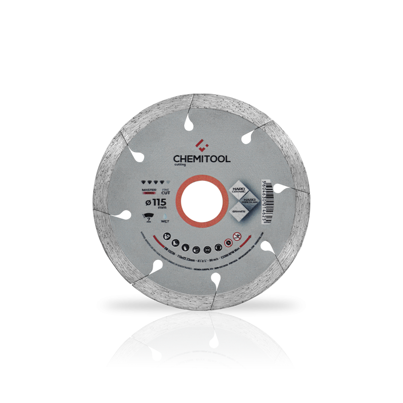 El disco de diamante CHEMITOOL es compuesto por una concentración de grano de diamante de calidad. Tiene una altura de segmento de 7 mm (115) y 10 mm (230), lo que garantiza una gran relación calidad/valor.