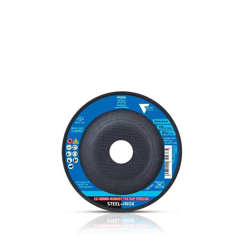 El CC-GRIND ROBUST de PFERD es una alternativa moderna, robusta y ergonómica a los discos de desbaste, flap y fibra. Este producto patentado en varios países combina eficiencia y alto rendimiento. La rueda de desbaste está equipada con el grano abrasivo de alto rendimiento VICTOGRAIN, ideal para acero e inox (INOX), ofreciendo una excelente durabilidad y facilidad de uso.