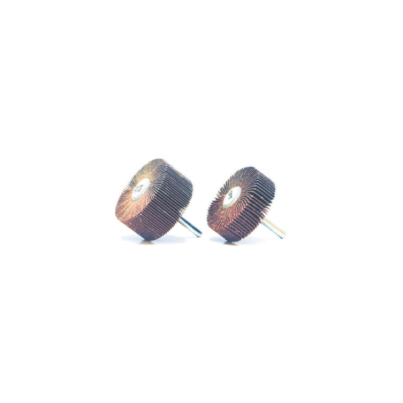 - Cepillos abrasivos fabricados con láminas de tela abrasiva de corindón extra, dispuestas radialmente sobre un núcleo de resina.