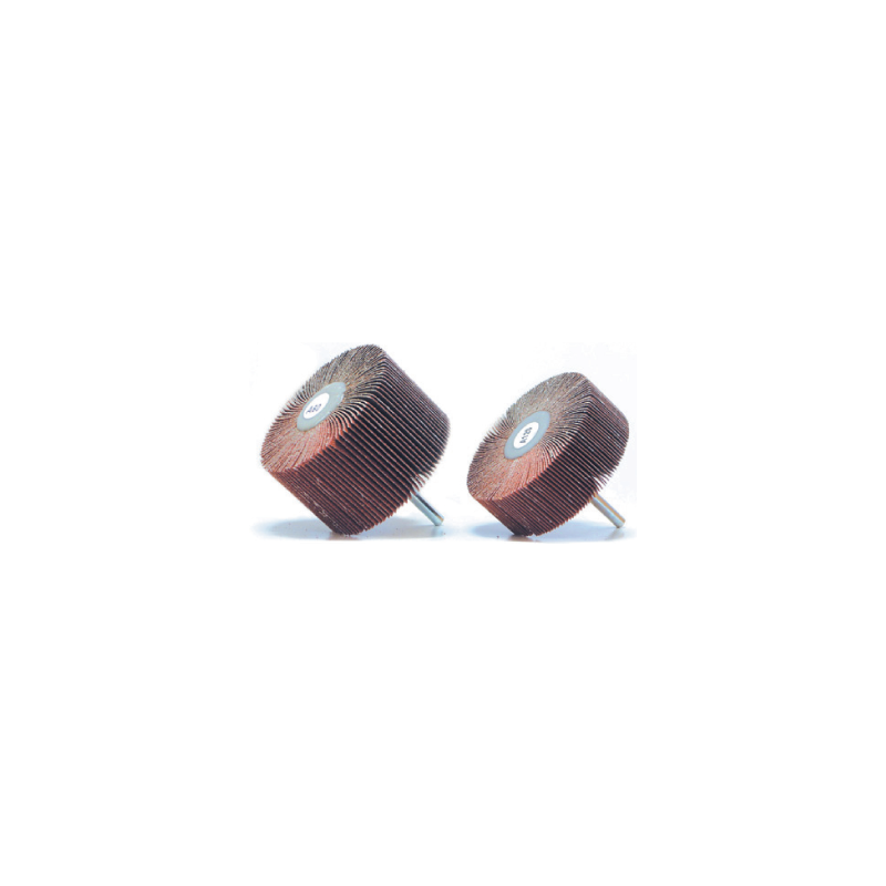 - Cepillos abrasivos fabricados con láminas de tela abrasiva de corindón extra, dispuestas radialmente sobre un núcleo de resina.