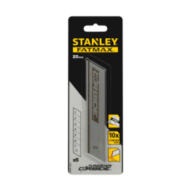 El STANLEY STHT0‑11825 es un pack de 5 hojas segmentadas CARBIDE de 25mm para uso profesional. Su borde con recubrimiento de carburo de tungsteno prolonga el filo, reduce cambios y mejora la eficiencia en materiales exigentes.