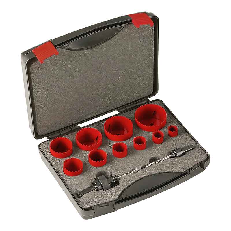 O conjunto de serras craneanas CHEMITOOL têm como principal função, permitir ao profissional ter acesso a variados diâmetros e acessórios de uma forma rápida e organizada.O conjunto produzido em aço rápido bimetálico M3 de elevada qualidade para os diferentes tipos de aplicações, sendo desenhadas especialmente para cada segmento de trabalho.Equipados com as respetivas árvores broca-guia, aço rápido e aço rápido com 8% cobalto, esta última, mais indicada para trabalhos em que é necessário efetuar a guia em materiais de maior dureza (aço inoxidável, por exemplo).Os encaixes/encabadouro são construídos de forma solida para sustentar a pressão exercida pela ferramenta elétrica, fazendo com quenão exista perca de energia na furação e que o processo de corte seja continuo.