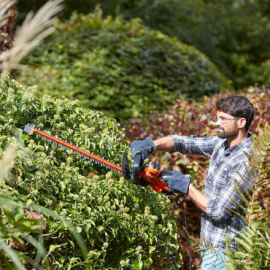 Características: - Comprimento da lâmina de 45cm ideal para cortar sebes pequenas. - Espaço entre dentes 16mm e desenho ergonómico 10% mais leve. - Guarda transparente para maior visibilidade ao cortar na vertical. - Punho auxiliar em forma T para maior comodidade e controlo.