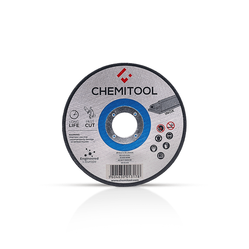 O Disco de Corte Inox CHEMITOOL é composto por Óxido de Alumínio A de alta qualidade e dureza.