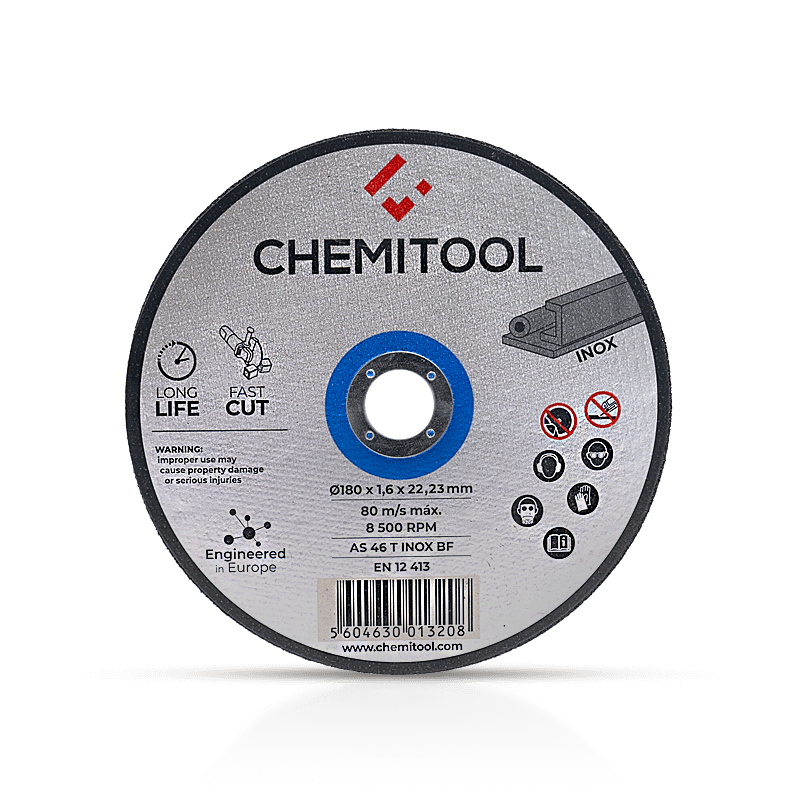 O Disco de Corte Inox CHEMITOOL é composto por Óxido de Alumínio A de alta qualidade e dureza.