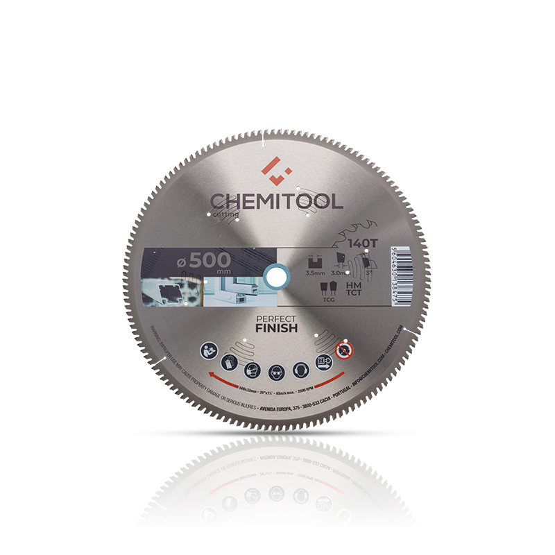 O disco pastilhado CHEMITOOL é composto por dentes em carboneto de tungsténio de elevada qualidade soldados em processo automático.Corpo do disco e ranhuras de expansão são cortadas a laser para fornecer robustez e precisão evitando assim a deformação no sentidode obter uma ótima relação qualidade/valor.O disco pastilhado para alumínio e pvc tem como principal característica, a perfeição e estabilidade no corte. A geometria do denteem TCG (Dente Trapezoidal + Dente Plano) juntamente com o formato do disco, permite a este tipo de disco efetuar corte em perfis e maciços, especialmente de alumínio e pvc.