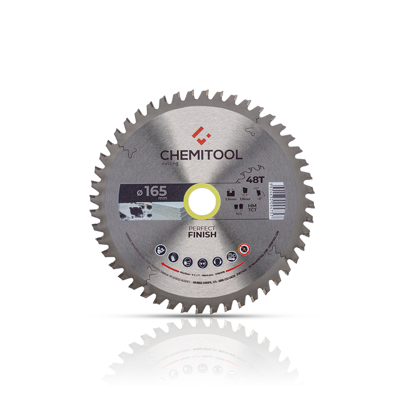 O disco pastilhado CHEMITOOL é composto por dentes em carboneto de tungsténio de elevada qualidade soldados em processo automático.Corpo do disco e ranhuras de expansão são cortadas a laser para fornecer robustez e precisão evitando assim a deformação no sentidode obter uma ótima relação qualidade/valor.O disco pastilhado para melamina e multimaterial tem como principal característica, a perfeição do corte, bem como a capacidade de cortar diversos tipos de materiais. A geometria do dente em TCG (Dente Trapezoidal + Dente Plano) juntamente com o formato do disco,permite a este tipo de disco efetuar corte em perfis e maciços, como melamina, alumínio e plástico.