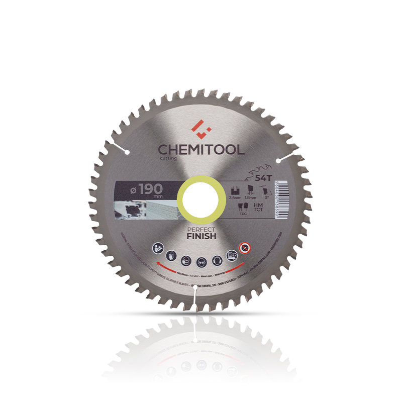 O disco pastilhado CHEMITOOL é composto por dentes em carboneto de tungsténio de elevada qualidade soldados em processo automático.Corpo do disco e ranhuras de expansão são cortadas a laser para fornecer robustez e precisão evitando assim a deformação no sentidode obter uma ótima relação qualidade/valor.O disco pastilhado para melamina e multimaterial tem como principal característica, a perfeição do corte, bem como a capacidade de cortar diversos tipos de materiais. A geometria do dente em TCG (Dente Trapezoidal + Dente Plano) juntamente com o formato do disco,permite a este tipo de disco efetuar corte em perfis e maciços, como melamina, alumínio e plástico.