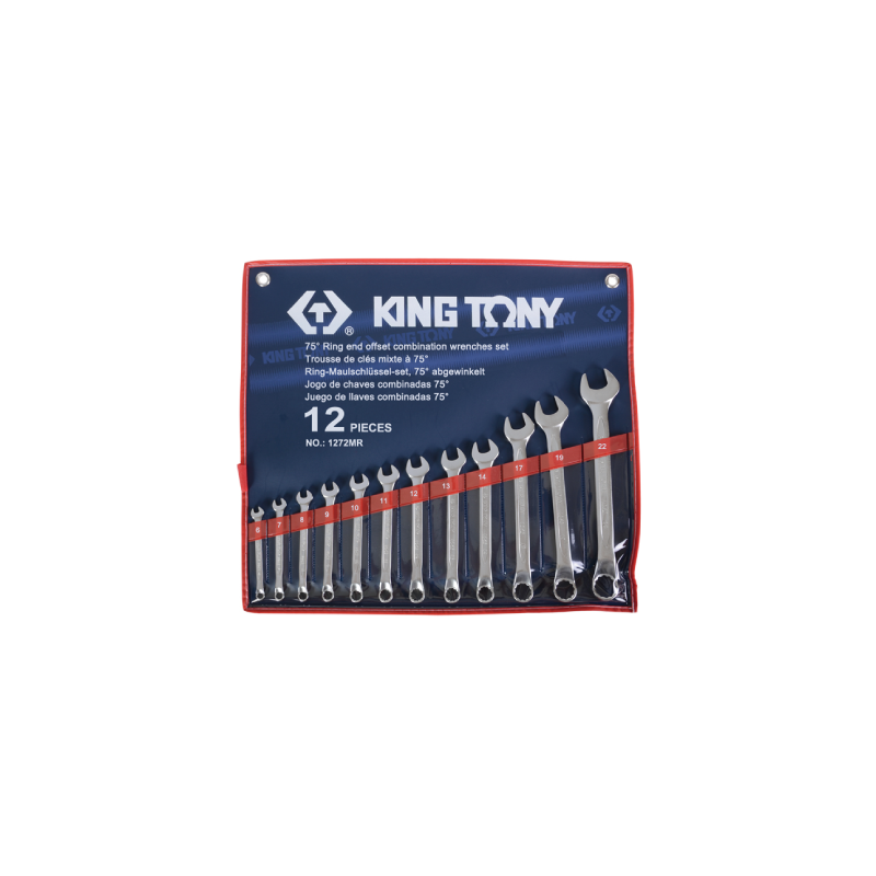 Descrição-Conjunto de chaves combinadas offset KING TONY com bolsa de nylon, 6 mm - 22 mm, 12 peças. |