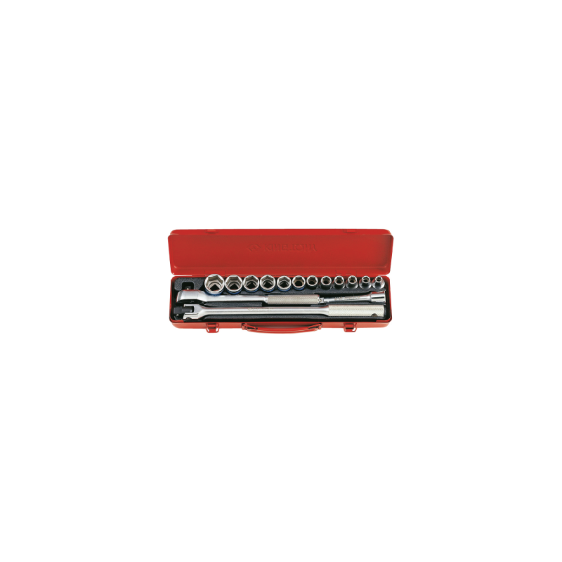 Conteúdo:1.) 8, 10, 11, 12, 13, 14, 17, 19, 21, 22, 24, 27mm,2.) Catraca 10,3. Punho de alimentação 15,3.) Barra de extensão 5.