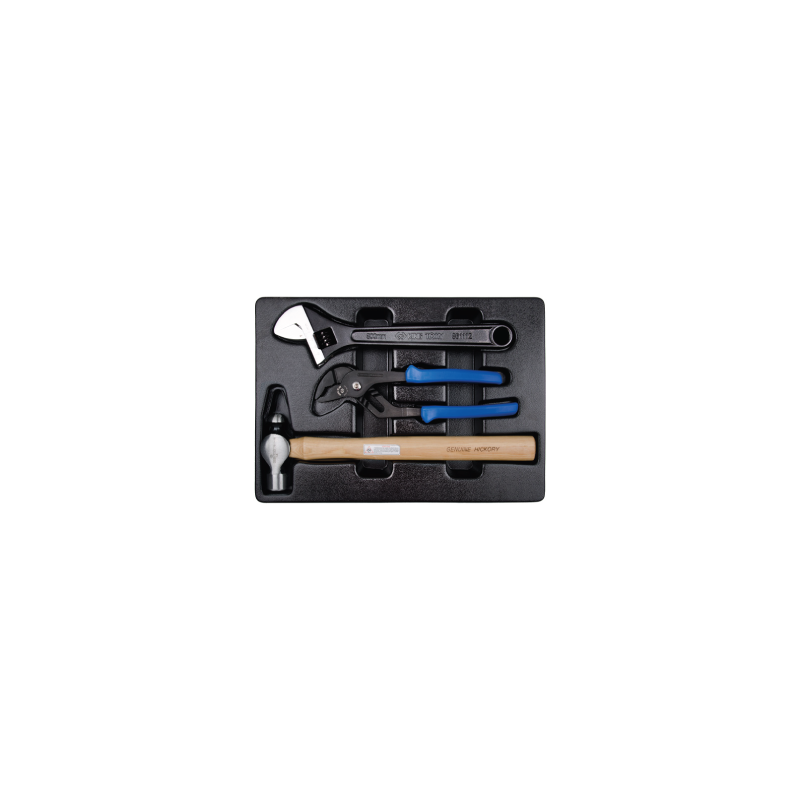 Estojo porta-ferramentas,Podem ser usados dentro da gaveta e/ou sobre a bancada,Chave ajustável, alicate bomba d'água e martelo tipo bola.