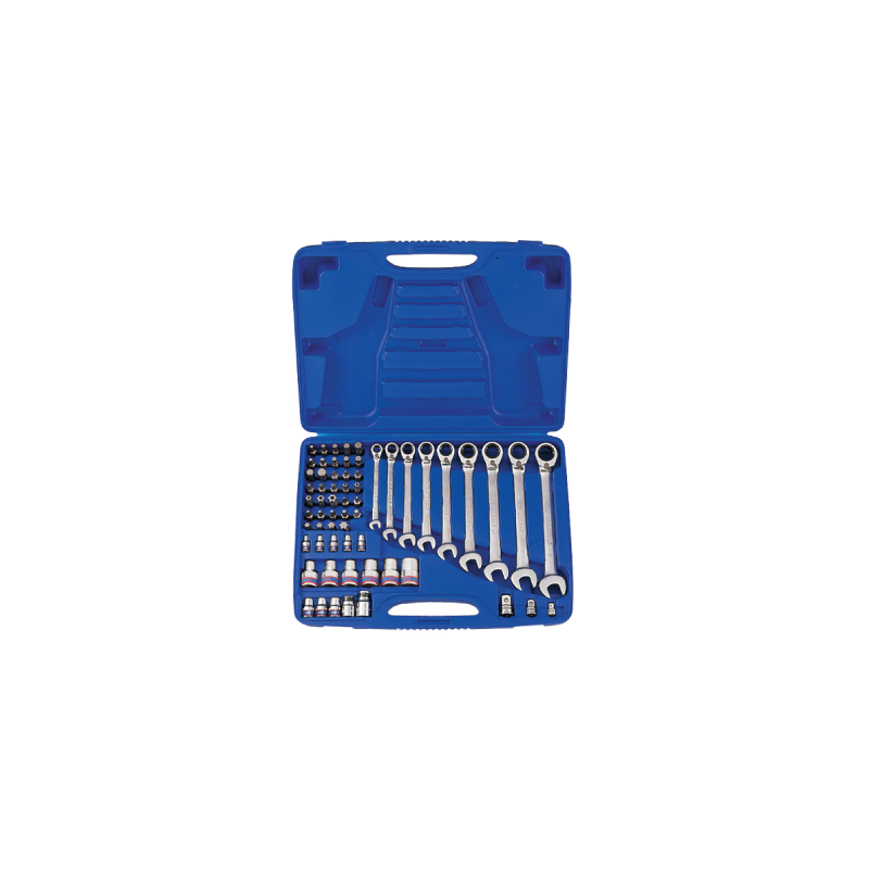 O kit contém:Tomada TORX de 1/4: E4, E5, E6, E7, E8,1/4 inserção da chave 10mm,Tomada TORX de 3/8: E10, E11, E12,porta-bits 3/8 10 mm,3/8 Inserção de chave 13mm 10mm,Bits:HEX. 4, 5, 6, 7, 8, 10, 12mm;TORX T10, T15, T20, T25, T27, T30, T40, T45, T50, T55, T60;TORX (com furos de pinos) T10, T15, T20, T25, T27, T30, T40, T45, T50, T55, T6012 feixes М5, М6, М8, М10, М12,Soquete TORX de 1/2: E10, E12, E14, E16, E18, E20,porta-bits 1/2 10mm,1/2 inserção de chave 19mm,A chave combinada com khrap./fur. 72 dentes (com reverso): 8, 10, 12, 13, 14, 16, 17, 18, 19mm.