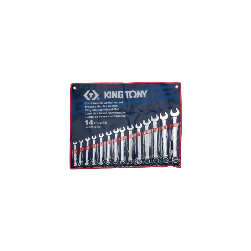 Chave combinada em polegadas (3/8 - 7/16 - 1/2 - 9/16 - 5/8 - 11/16 - 3/4 - 13/16 - 7/8 - 15 /16 - 1 - 1-1/16 - 1-1/8 - 1-1/4)Conjunto de chaves combinadas em polegadas - 14 peças.