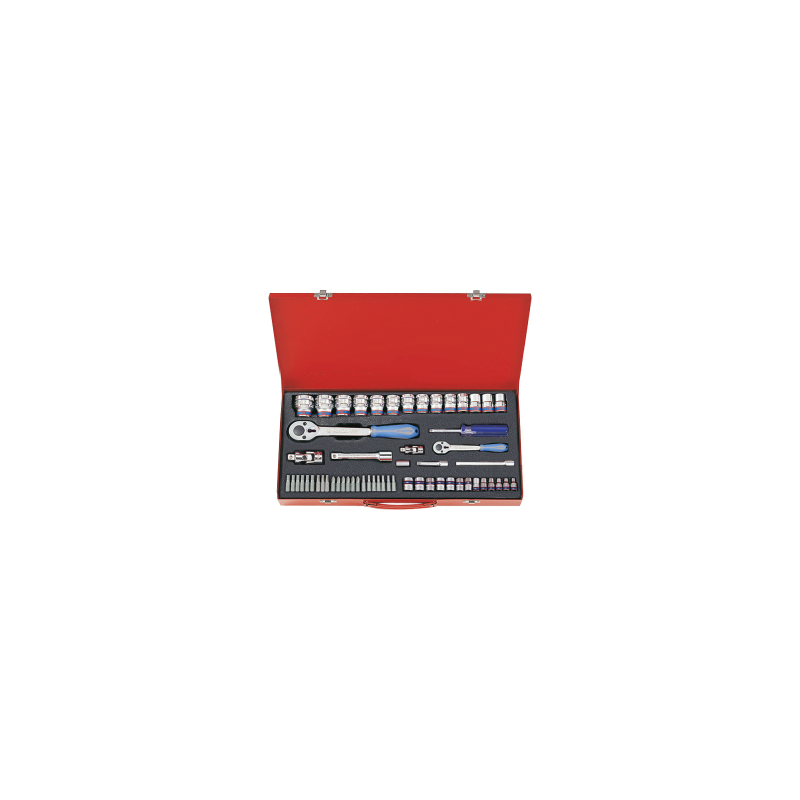 Descrição-Conjunto de soquete e catraca métrica de 6 pontos de acionamento de 1/2, 58 peças . |