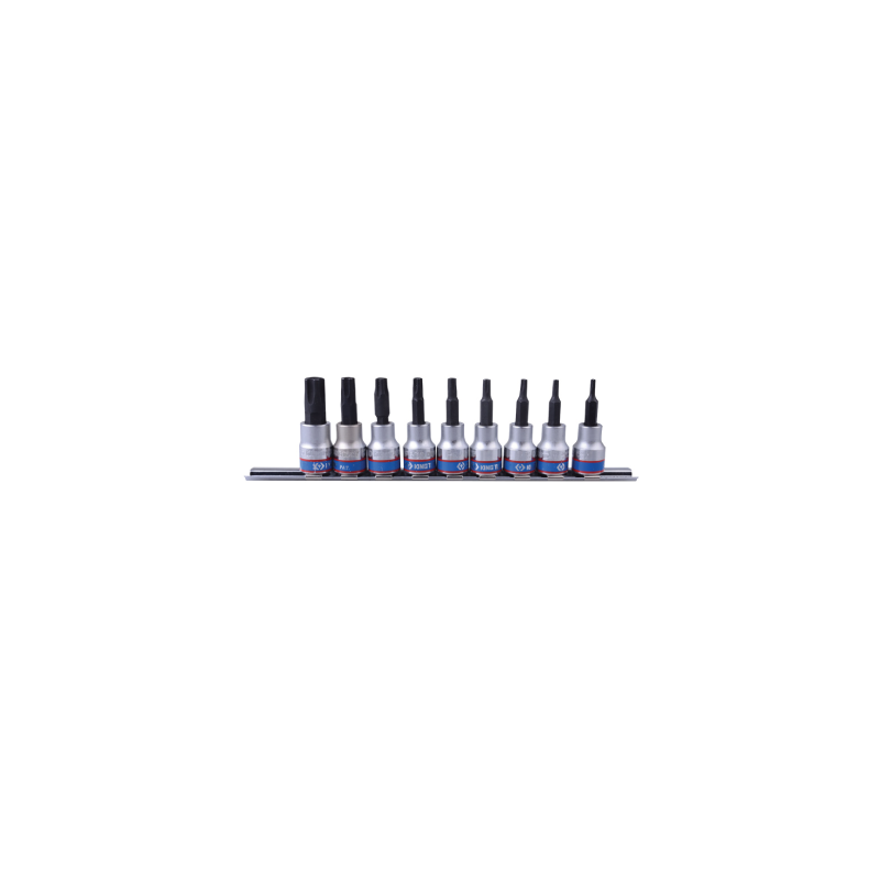 9 x soquete de bits resistente a adulteração de unidade de 3/8 de polegada TORX PLUS (IPR10, IPR15, IPR20, IPR25, IPR27, IPR30, IPR40, IPR45, IPR50), trilho e clipe de soquete de unidade de 3/8 de polegada.