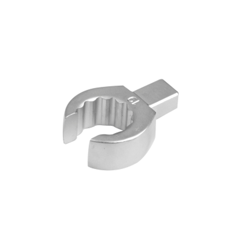 Cabeça de chave dinamométrica de 9x12mm com chave plana de 12mm. O sistema de cabeças variáveis permite apertar o parafuso, que não é acessível por cima, com uma determinada força usando uma ponta plana ou uma ponta de anel.