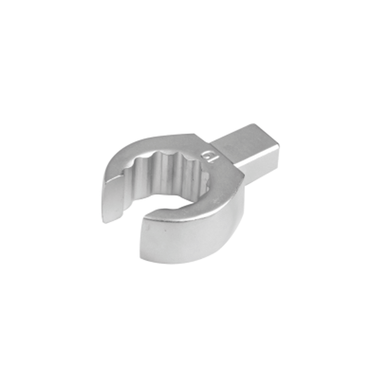 Cabeça de chave dinamométrica de 9x12mm com chave plana de 14mm. O sistema de cabeças variáveis permite apertar o parafuso, que não é acessível por cima, com uma determinada força usando uma ponta plana ou uma ponta de anel.