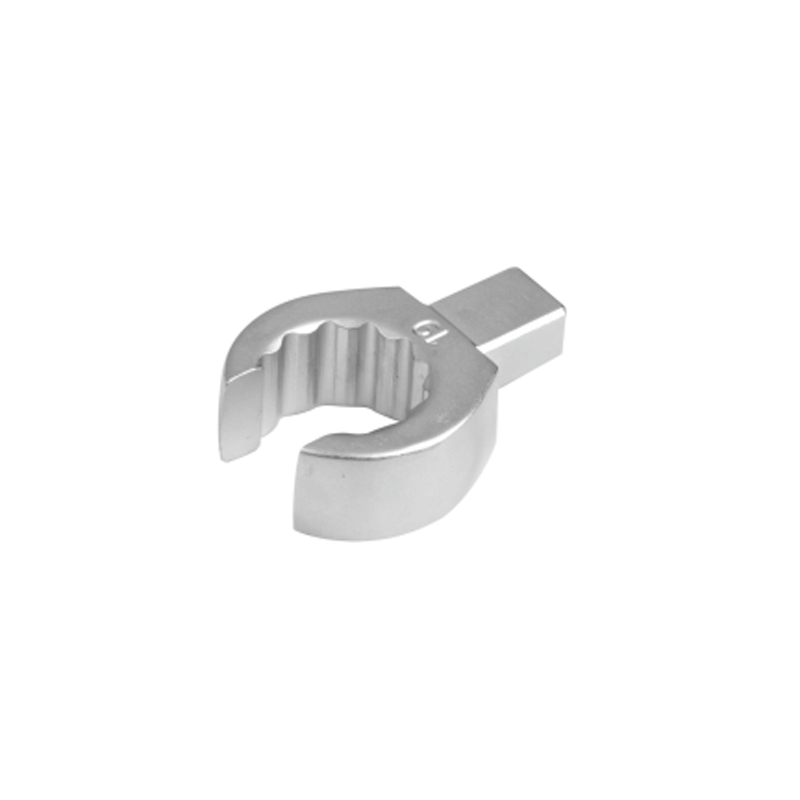 Cabeça de chave dinamométrica de 9x12mm com chave plana de 21mm. O sistema de cabeças variáveis permite apertar o parafuso, que não é acessível por cima, com uma determinada força usando uma ponta plana ou uma ponta de anel.