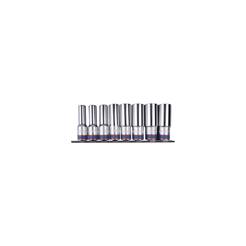 Modelo longo,Acompanha suporte,Encaixe: 1/2”,Composto por 8 peças, sendo:12, 13, 14, 17, 19, 21, 22 e 23 mm.