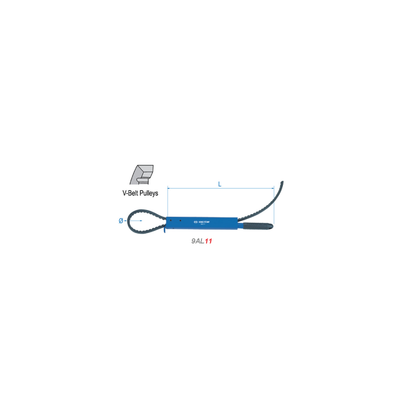 Chave para retenção de polia tipo V com corpo fabricado em aço carbono com acabamento em pintura especial. Utilizado para bloquear a polia durante a remoção ou montagem de qualquer tipo de parafuso de retenção da polia.