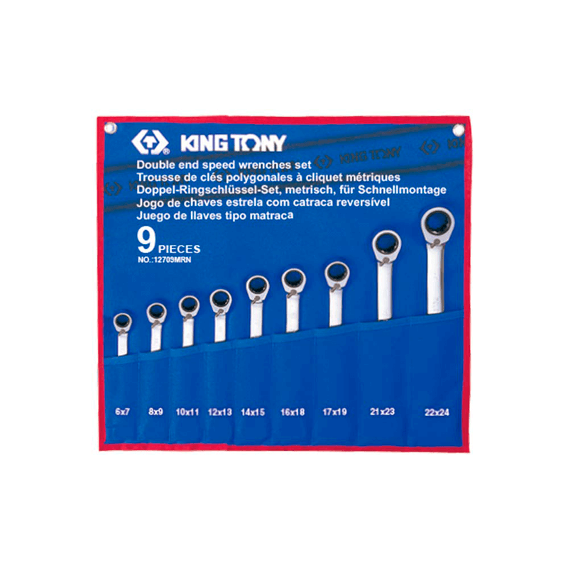 Descrição-Conjunto de chaves de velocidade dupla KING TONY com bolsa tetoron, 6 mm - 24 mm, 9 peças. |