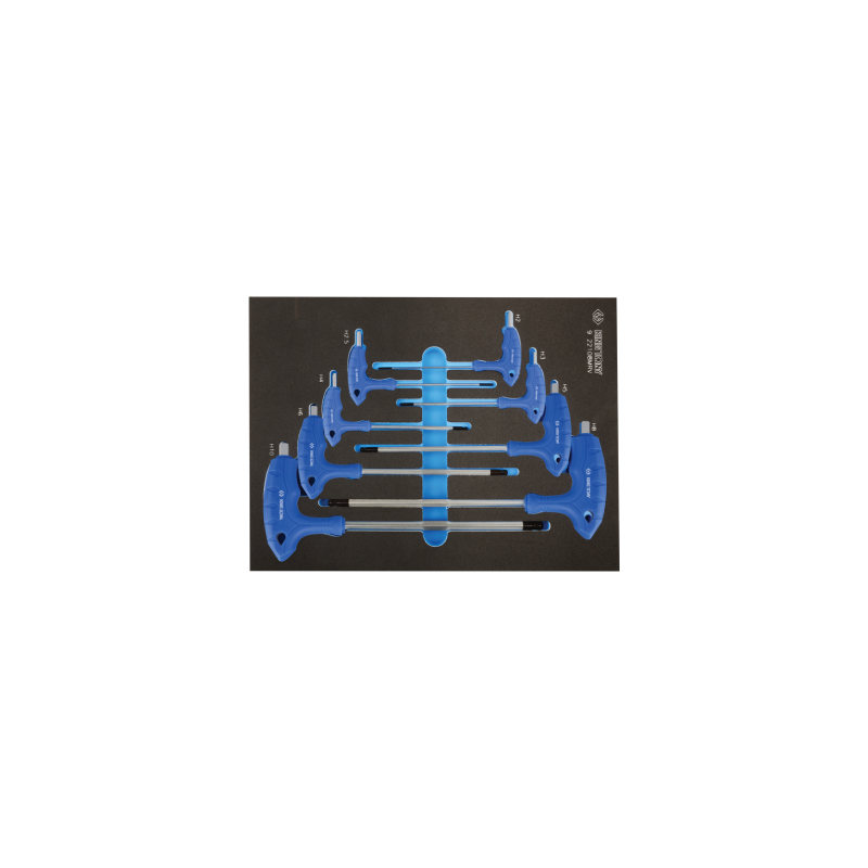 Conjunto de hexágonos tipo L 1160M H2, H2.5, H3, H4, H5, H6, H8, H10.material de que são feitos os hexágonos - SNCM + V - é uma liga especial de aços ligados com adição de molibdênio, o que confere às ferramentas uma resistência e confiabilidade especiais. Durante a produção, as superfícies de trabalho dos hexágonos KING TONY são submetidas a um tratamento térmico especial que protege as superfícies de trabalho contra desgaste prematuro e lascamento.