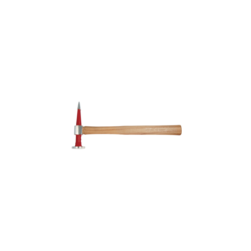 Martelo de chapeiro,1 praça redonda com superfície plana,1 extremidade da cabeça com pico,Cabo em Hickory.