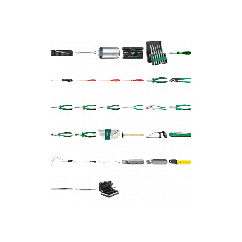 - nº 40a: 5/32; 3/16; 7/32; 1/4; 9/32; 5/16; 11/32; 3/8; 7/16; 1/2; 9/16; nº 400QR; 405/2QR (2x); 405/6QR; 407QR; 412; 415SG-QR;