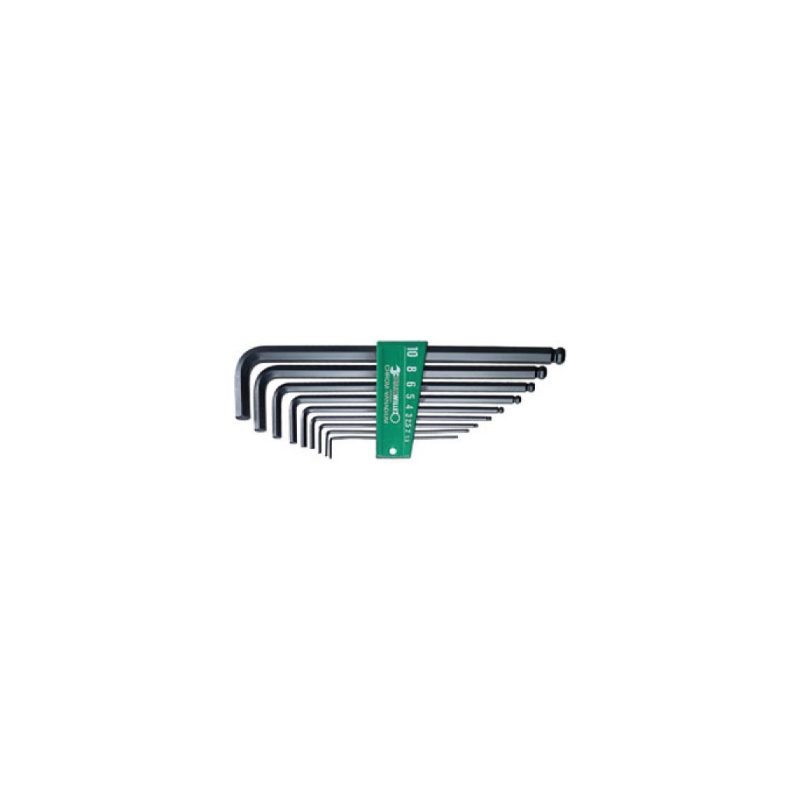DescriçãoPara uso em parafusos hexagonais internos. Braço longo com ponta esférica, ângulo giratório de até 25° em cada direção, cromo-vanádio, azulado. |