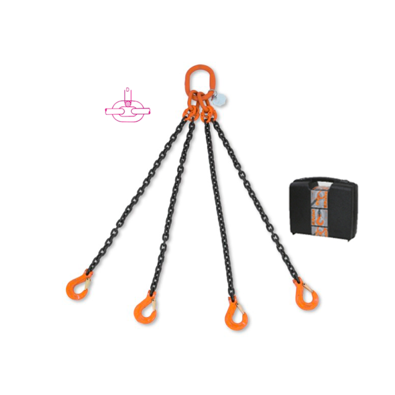 Descrição-Eslinga de corrente de elevação, 4 pernas em caixa de plástico, grau 8. |