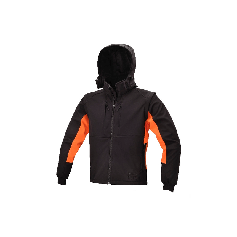 Capuz removível e ajustável com cordão elástico,Mangas destacáveis,Dois bolsos grandes na cintura com fecho de correr,Dois bolsos grandes no peito com fecho de correr, um com inserção de suporte de crachá,Dois bolsos internos,Ajustadores de cordão na cintura,Cor preta/laranja.