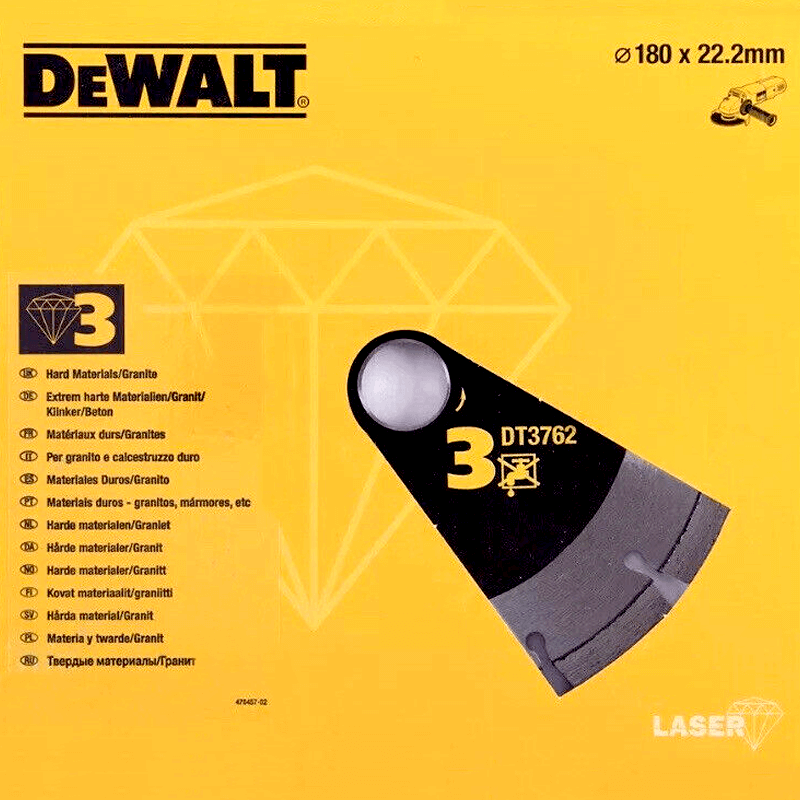 Lâmina de Diamante de Alto Rendimento para Corte de Materiais Duros/Granitos 180x22.2mm DeWALT |