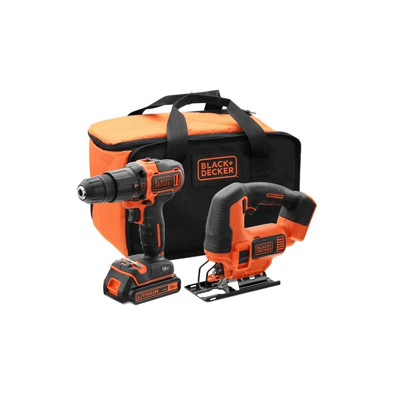 Berbequim com Percussão 18V e Serra de Recortes 18V com Saco de Transporte BLACK+DECKER |