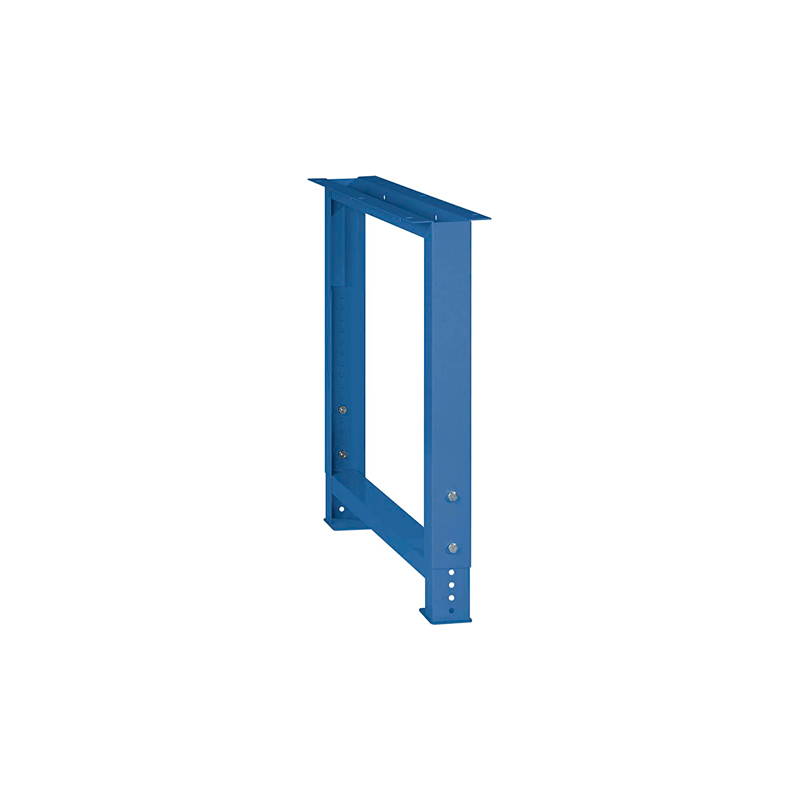 Conjuntos de pernas de bancada, estacionários, de altura fixa e reguláveis em altura: O conjunto de pernas de bancada LISTA é umaconstrução robusta em chapa de aço, soldada entre si com perfis extrudados, com furos para fixação na parte superior. Os pés podem ser ancorados (55.226.000) ao chão através de um orifício na placa de base. Capacidade 400kg. Especificação: chapa de aço. Cor: conforme cartela de cores.
