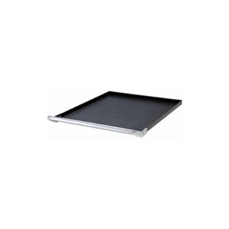 Cantos elevados em 4 lados, com barra de pressão: Em chapa de aço, preto, NCS S 9000-N, incluindo tapete canelado, preto. Barra de impulso composta por um par de hastes de cabo de plástico, alumínio branco RAL 9006 e tubo de alumínio Ø 25 mm, anodizado incolor.