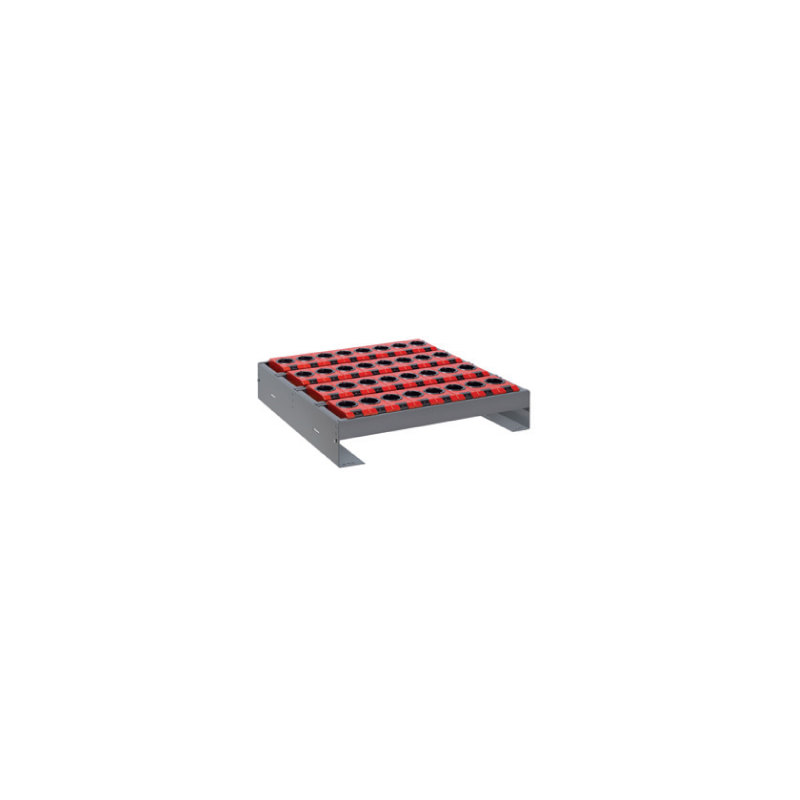Pares de quadro de inserção e suporte de quadro de inserção: disponíveis como um conjunto ou como componentes individuais. É necessário um par de suportes de quadro de inserção por quadro de inserção. Usando pares de porta-moldes de diferentes alturas, que são aparafusados com o bastidor na base perfurada das gavetas, ferramentas de diferentes comprimentos cônicos podem ser armazenadas nas gavetas.
