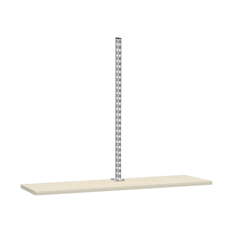 Pilares de suporte para montagem em bancadas de trabalho: Os pilares de suporte estão disponíveis em quatro alturas diferentes e devem ser aparafusados directamente na superfície superior (pelo cliente) utilizando o material de fixação fornecido. Capacidade 100 kg (A capacidade de carga nas bancadas Universal, Eterlux e Resin é de 50 kg). Material de fixação incluído. Especificação: perfil deaço, perfurado em quatro lados em incrementos de 50 mm para fixar os componentes da superestrutura com o mínimo de utilização de parafusos. Cor: de acordo com a tabela de cores. Espessura mínima do topo: 40 mm. Apenas adequado para montagem em bancadas de trabalho em madeira de faia, multiplex, universal, Eterlux, resina e ABS.