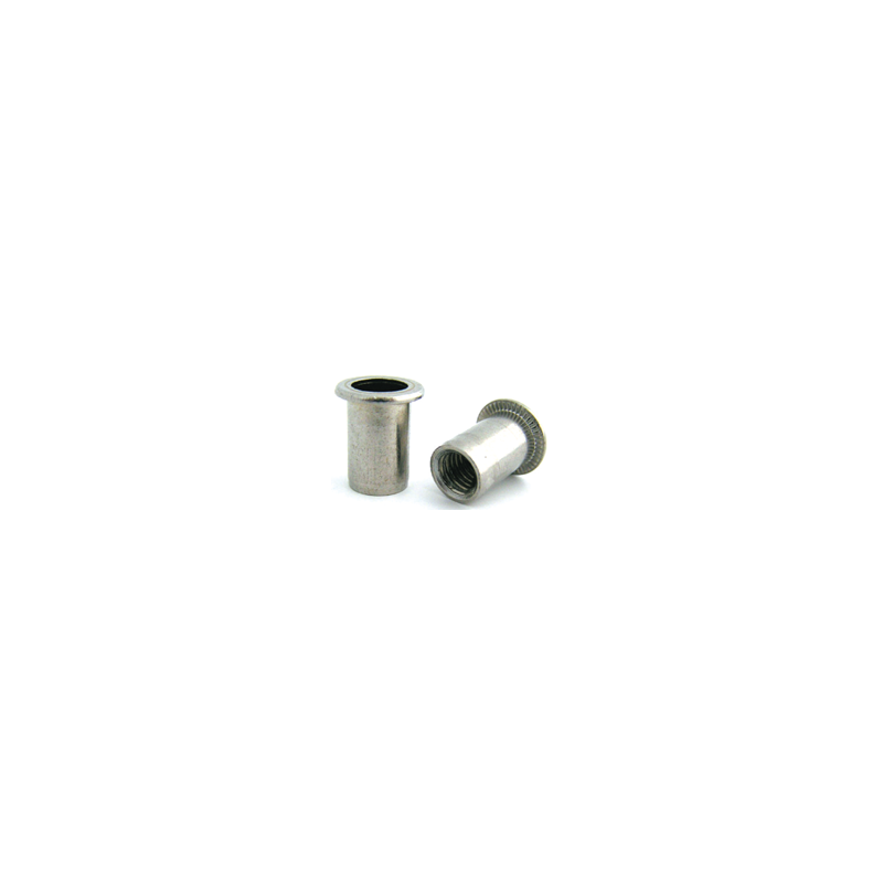 A porca de rebitar constitui a solução para a obtenção de um ponto roscado em materiais brandos ou de pequena espessura.Foi concebido para aplicações cegas que apenas estão acessíveis por um dos lados da montagem, como suportes ou painéis.Ao não ser necessário nenhum retoque após a sua colocação, incluindo peças já revestidas ou pintadas, permite a montagem em qualquer fase da produção.