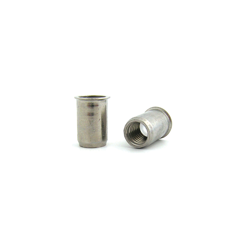 A porca de rebitar constitui a solução para a obtenção de um ponto roscado em materiais brandos ou de pequena espessura.Foi concebido para aplicações cegas que apenas estão acessíveis por um dos lados da montagem, como suportes ou painéis.Ao não ser necessário nenhum retoque após a sua colocação, incluindo peças já revestidas ou pintadas, permite a montagem em qualquer fase da produção.