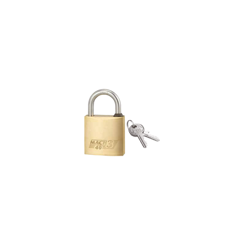 Corpo em latão monobloco. Arco em aço inoxidável, mecanismo de pino. Ancoragem dupla por meio de trincos. Junta de estanquidade. Orifício de circulação de água. 2 chaves de aço niqueladas.