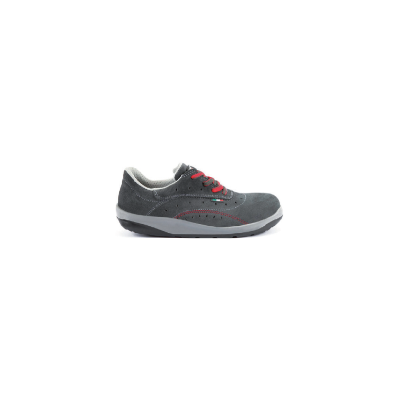 São sapatos muito respiráveis e resistentes à abrasão graças ao forro externo, a parte superior é em camurça. Têm biqueira em compósito resistente até 200J, enquanto a sola é em poliuretano de dupla densidade. Esses sapatos são ótimos para áreas de logística, carpintaria, automotiva, componentes e ESD.