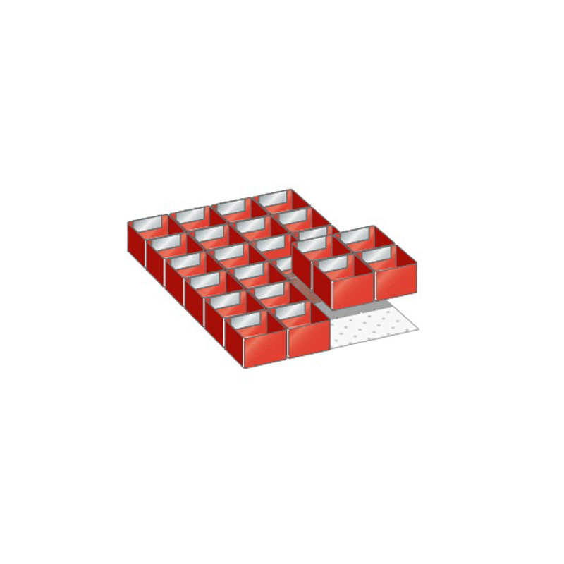 Caixas plásticas: Concebidas de uma forma modular, as caixas podem ser inseridas em gavetas de todos os tamanhos. Especificação: caixas de plástico, porta-etiquetas e divisórias feitas de plástico poliestireno. Cor: vermelho.